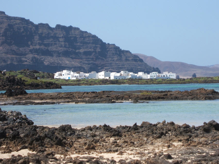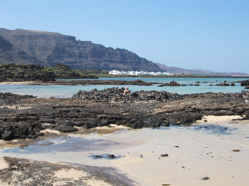 Orzola has two wonderful beaches, both having extremely different characteristics. Take the road from Arrecife to Tahiche, and turn towards Mala. There are several excellent Cesar Manrique structures along this route not to miss... The Cactus Garden, Jameos del Agua, Cuevas de los Verdes - all well worth a visit. South Beach: If you take the drive up north, as you approach Orzola, you will occasionally see a few cars parked on the side of the road. These are parking places for small beaches that you can only access by walking the last hundred meters. Well worth the time and effort. Just south of Orzola you will find a really nice, small, quiet beach named Caleton Blanco. If you miss the turn off (which is quite likely) no problem. When you arrive in Orzola, turn around and go exactly one kilometer past the sign which indicates the Orzola town limit. The entrance is the dirt road on the left hand side. The white buildings of Orzola with a backdrop of the black cliffs of Famara is quite spectacular. Be careful you don't get your towel wet through - the tide comes in very fast, as this beach is fairly flat!!