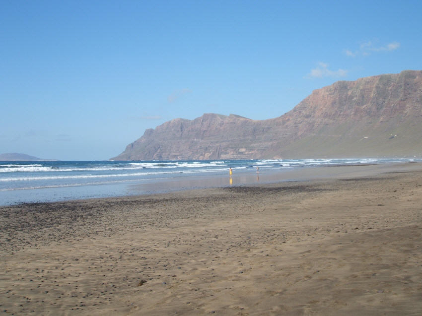 Playa Famara is a large, sweeping beach on the north side of the island. Great contrast between some brilliant cliffs and the ocean. One part of the beach is quite rocky, especially at high tide, but you can find some wonderful sand dunes if you go a little further. Be cautious of the undertow if you are using this beach, the currents are strong. We would not recommend this if you have children. Lots of surfing, windsurfing etc..