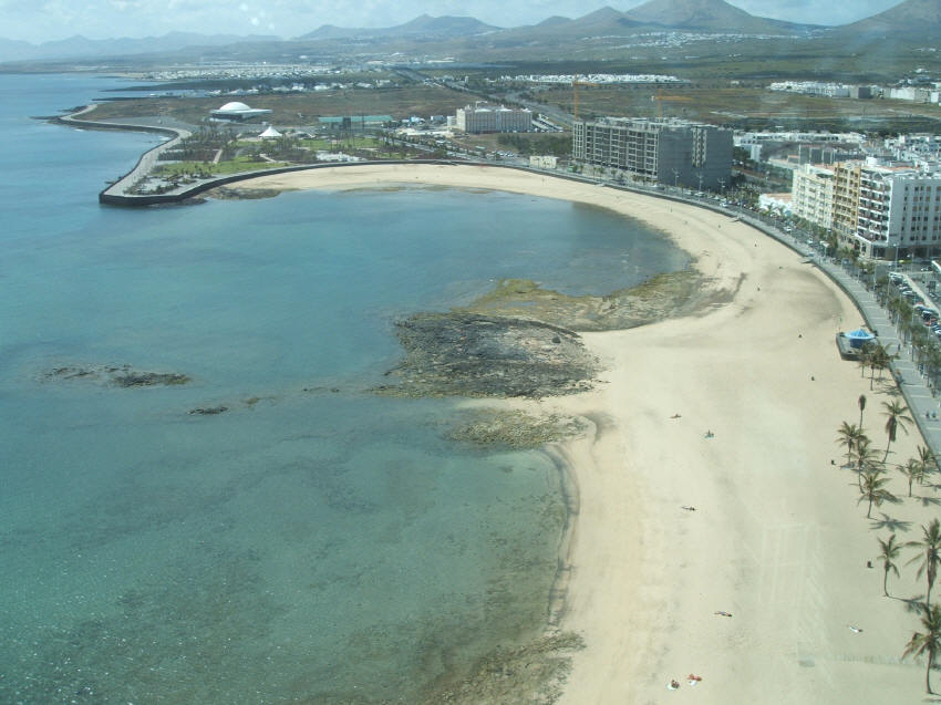 Playa del Reducto is the small beach in Arrecife, right next to the Grand Hotel. Man made, with great sand in an interesting downtown setting.